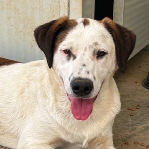 Farbe: weiß mit braunen Flecken