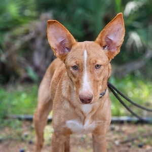 Sidney ist eine zarte Podencohündin mit den typisch großen, ausdrucksstarken Ohren, die jeden verzaubern. Sie kommt aus einer Perrera und hat dennoch ihre Sanftheit und ihr Vertrauen in die Welt bewahrt.